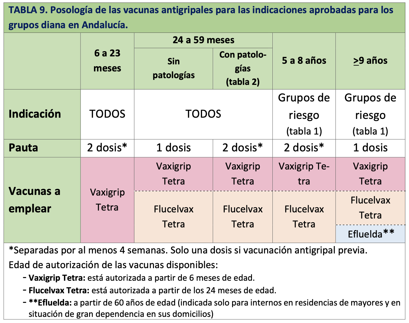 5. La población diana con indicación para la vacunación anual de gripe, tanto vulnerables por edad como por patologías o situaciones de riesgo, es prácticamente la misma que para la COVID-19. Ambas vacunas se pueden administrar el mismo día.