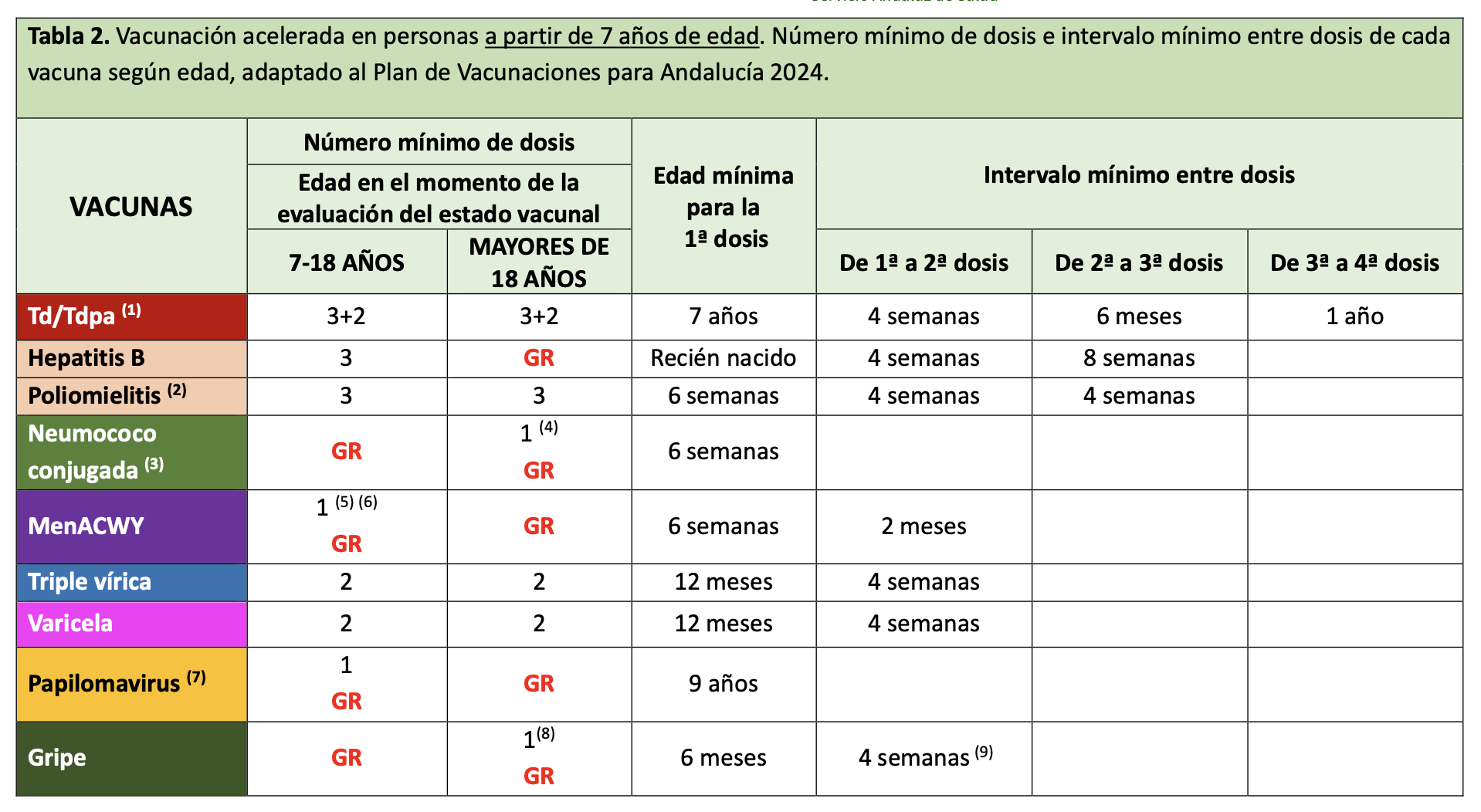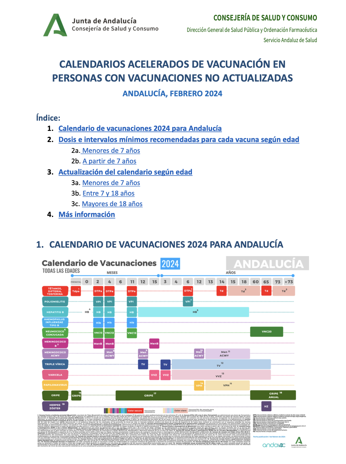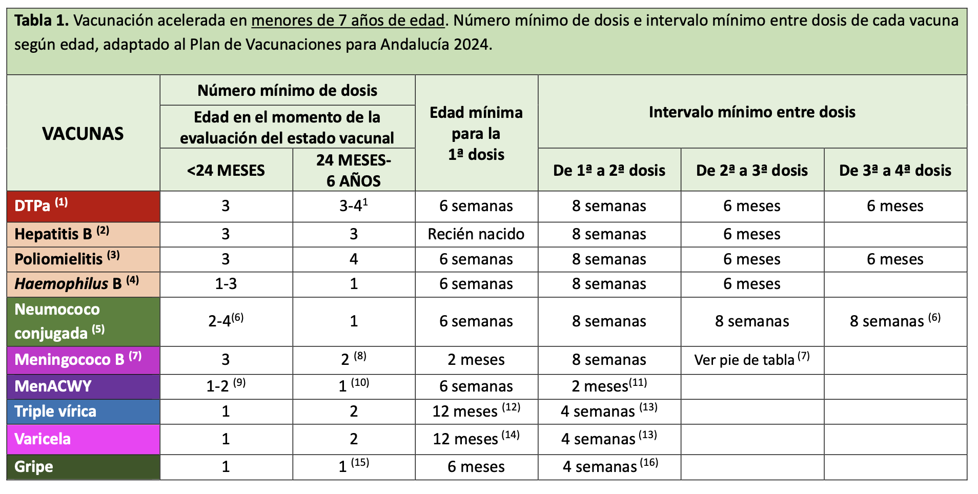 Actualización calendario menores 7 años