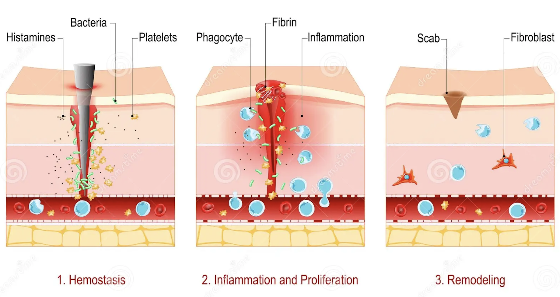 Estudios in vitro han demostrado que algunos jabones, especialmente los que contienen tensioactivos fuertes o un pH alcalino como los de elaboración casera, pueden ser citotóxicos para fibroblastos y queratinocitos, células esenciales en la regeneración cutánea. Además de que la alteración del pH y la flora de nuestra piel puede favorecer la colonización por patógenos oportunistas y retrasar la epitelización.